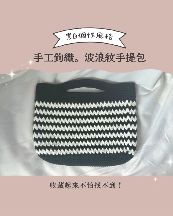 送禮自用首選送禮自用首選:波浪紋手提包 黑白的波浪紋設計,交錯的線條編織出節奏感和層次感 簡約中帶點個性、又不失溫柔的一面 ʚ尺寸ɞ:高28cm 闊36cm
